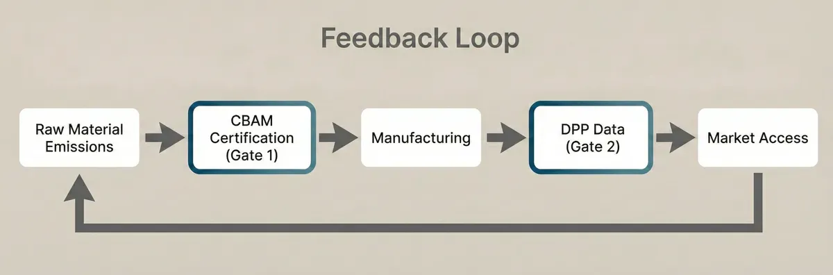 The siloed approach—CBAM handled here, DPP handled there—misses the structural linkage between them.
