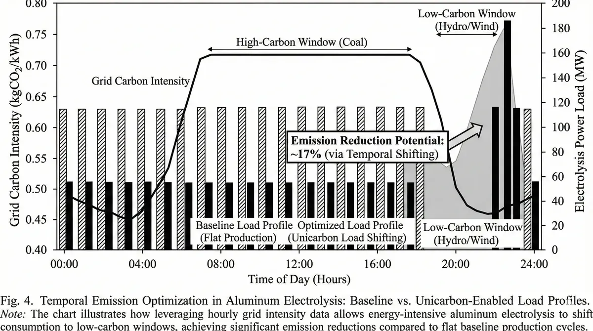 The dual mechanisms operate in reinforcing feedback. Enhanced data resolution alone increases verified batches to approximately 45,000 tons by enabling regulatory authorities to accept hourly-granularity documentation. Simultaneously, load optimization reduces actual emissions by 4.1% through preferential consumption of low-carbon generation, creating additional high-quality documentation as a byproduct of operational changes. The combined effect elevates verified production to 55,000 tons, yielding τ = 0.45 and saving approximately €5.75 million annually in CBAM compliance costs [55].