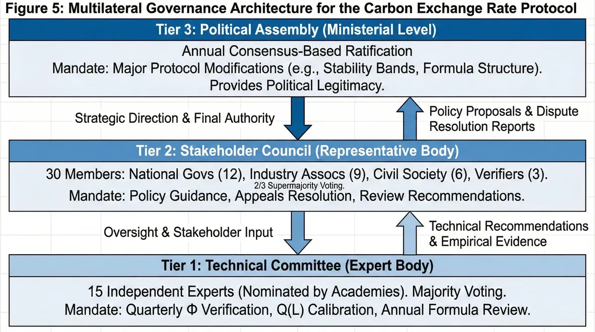 The observers contribute technical expertise (Φ dimension assessment validation, Q(L) coefficient calibration input, gaming countermeasure design) while EU-appointed members retain formal decision authority. This asymmetric structure proves politically feasible for EU (maintains regulatory sovereignty) while providing substantive influence for exporters (their technical input shapes actual implementation even absent voting power).
