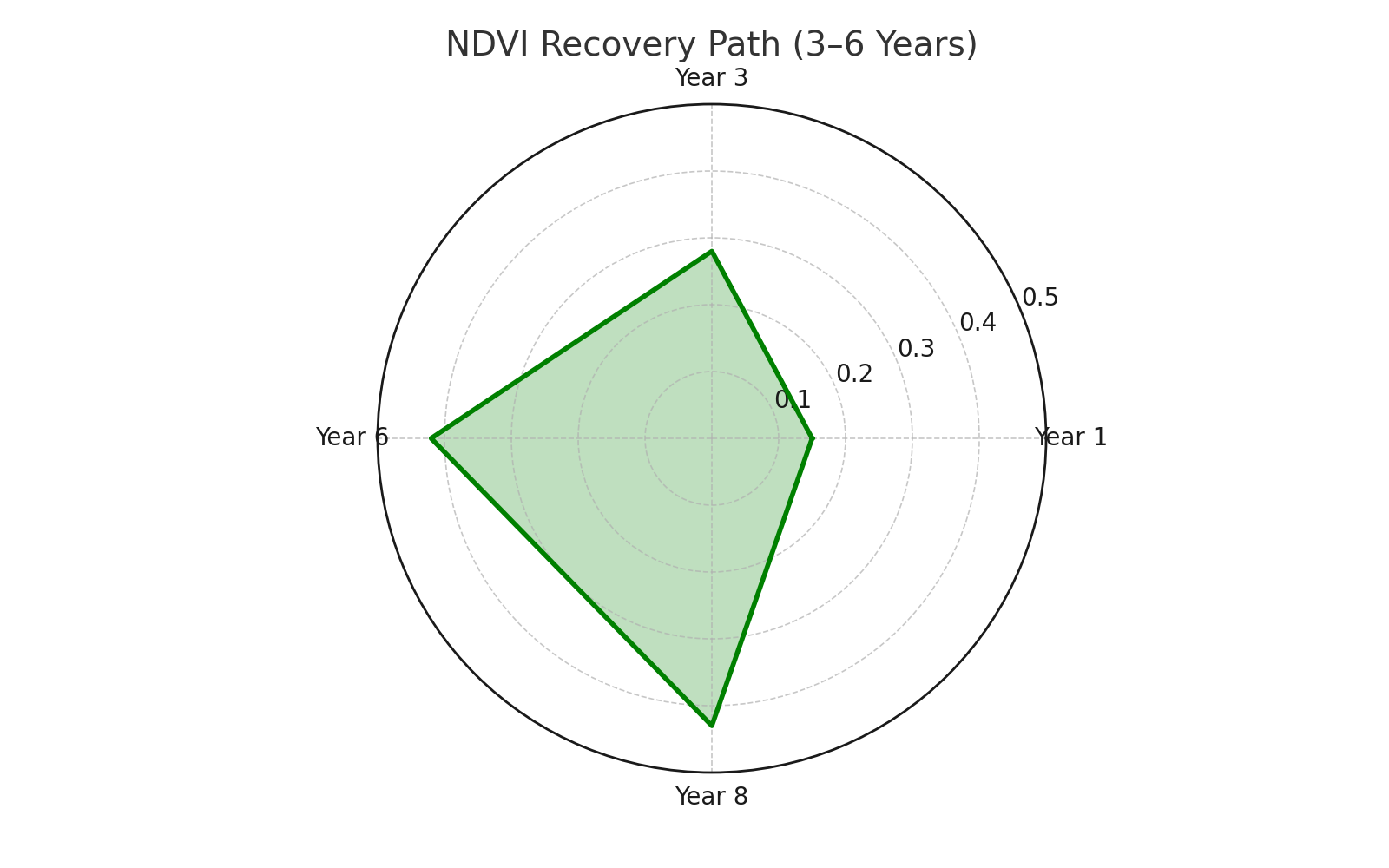 Field note: Hyper-arid sites may never achieve meaningful vegetation recovery. Sites receiving consistent precipitation above 250mm show accelerated timelines. Model assumptions should reflect local conditions rather than universal curves.