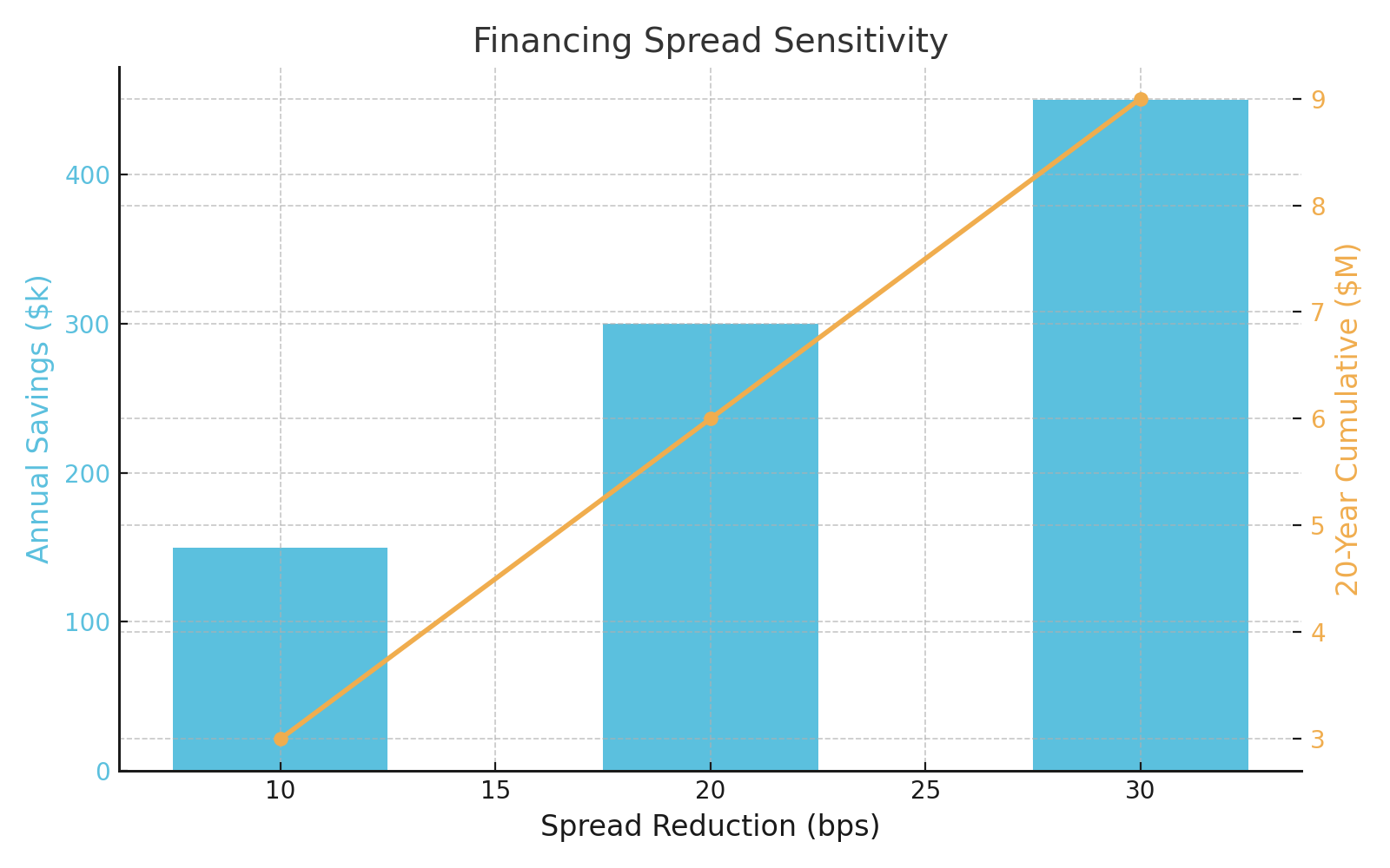 These three numbers are not independent variables; they are sequential links in a single, powerful value chain. The logic flows directly from the physical to the financial, converting ecological performance into a lower cost of capital. Understanding this progression is key to communicating the value to your entire capital stack, from engineers to insurers to lenders.